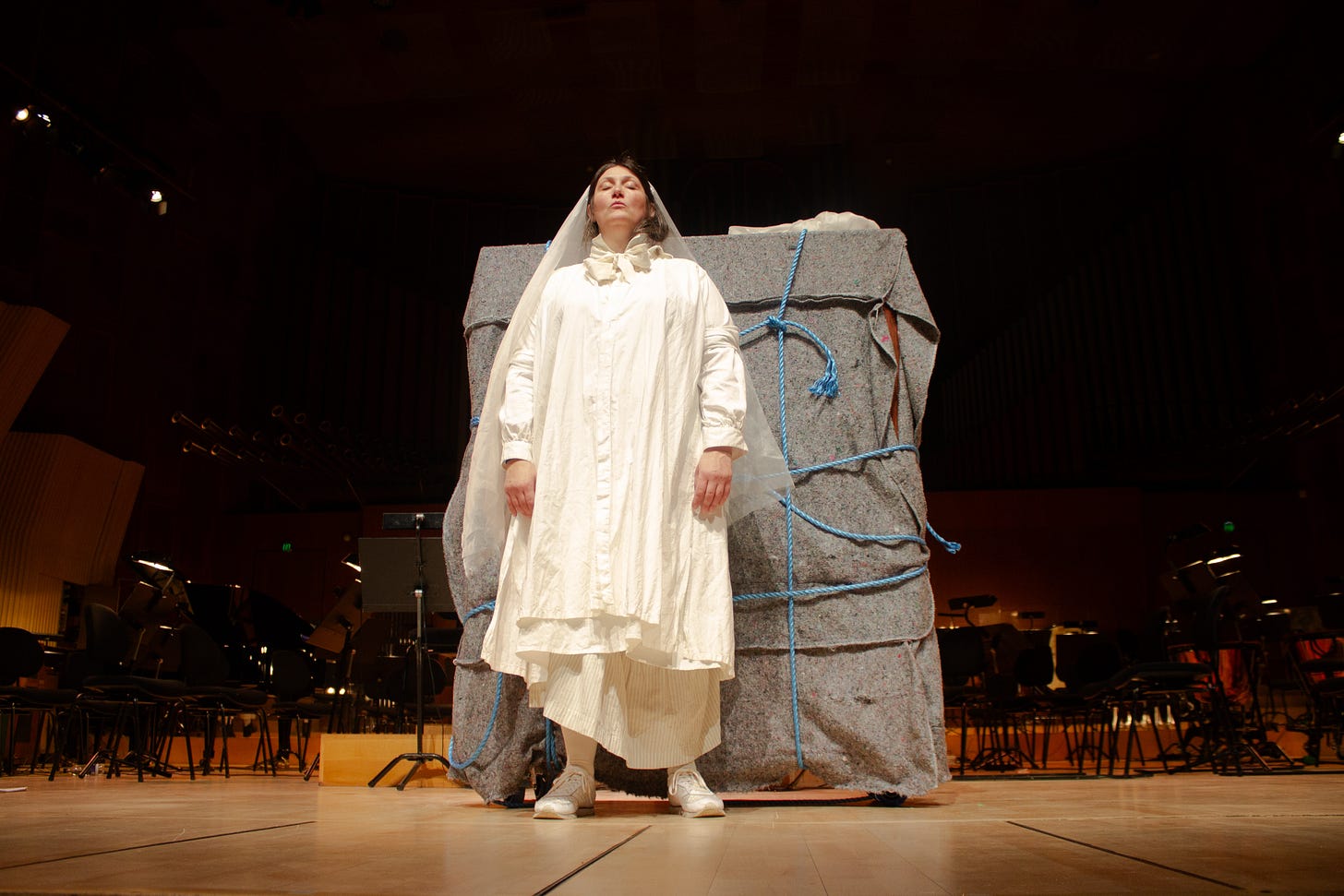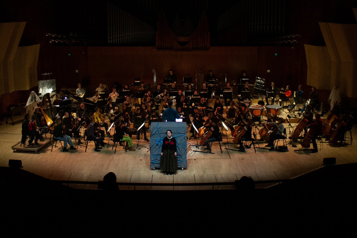 Orchestra and conductor entered after intermission. I walked out on the stage to stand in front of the wardrobe.
