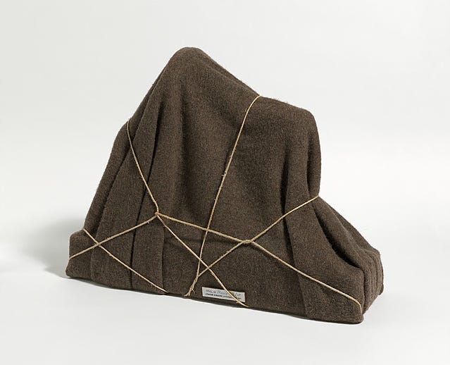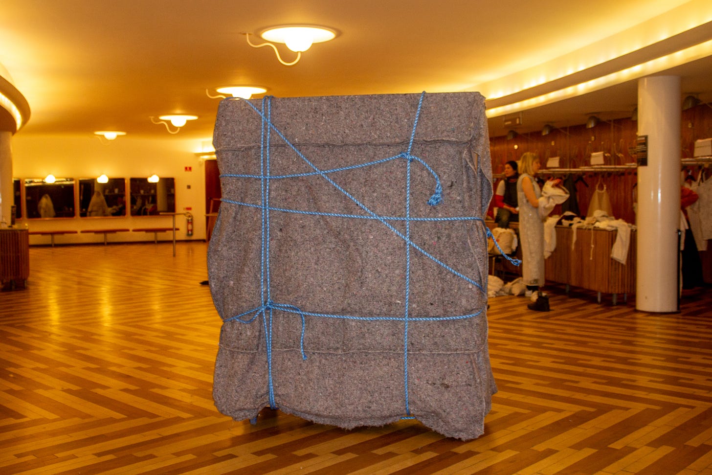 I wanted to use everyday materials, that one would use moving furniture, we settled on these blankets and shiny, blue plastic rope: