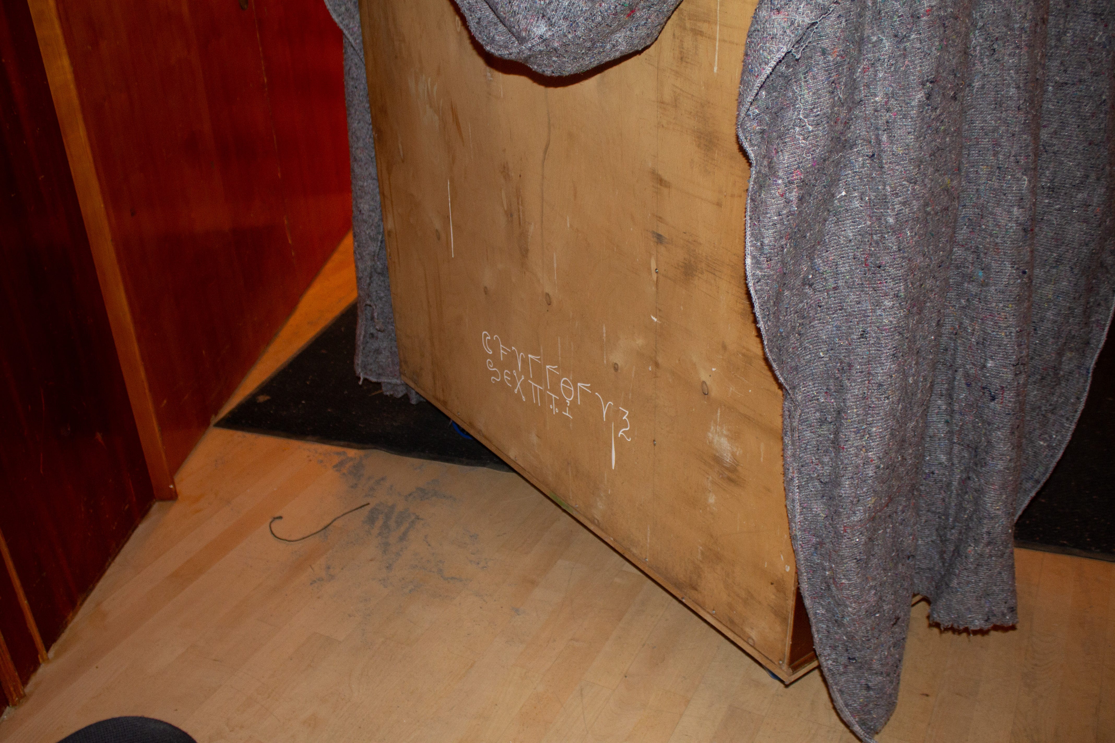 I knew I wanted the performancers to dance around the wardrobe, to somehow worship it. I installed several secrets into the wardrobe (read about secrets in the first part!) On the back of the closet I wrote a protective spell. Nobody saw this. I doubt even the performers noticed.
